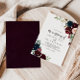 Esta aquarela ilustrada no outono, o casamento do convite é perfeito para um casamento elegante. A design apresenta marinho de aquarela pintada à mão artística azul, burgundy, vermelha, rosas de pincel e peônias com folhas verdes elegantes, inspirando a colorida beleza do outono idílico.
