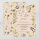 Apaixonar-se pelo chá de panela chic floral de outono, com bonito quadro de flores verde, amarelo, mostarda e khaki, com folhagem e eucalipto. Um livro inspirou o tema do chá de panela do outono, com uma tipografia moderna da escrita do coração e um bonito padrão floral nas costas, a rosa pastel empoeirado.