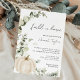 Este eucalipto branco de abóbora cai no chá de panela floral é perfeito para um chá de panela elegante. A design apresenta uma bela abóbora aquarela em branco, combinada com eucalipto verde. Uma letra elegante é o toque perfeito para terminar. A placa se reverte para um bonito padrão de eucalipto. Personalize com todos os detalhes do seu chá.