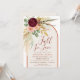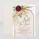 Celebrar a noiva a estar com esse chá de panela de outono apaixonado, com uma elegante queda aquosa buquê floral de flores vermelhas da burgundy, rosas rosa escamosas, verde de eucalipto, penas faisões, folhagem de grama de pampas seca, folhas de outono de ouro e muito mais. A design é colocada sobre um fundo branco e enquadrada por um arco gracioso, mas moderno, no bege de laranja e de farinha de aveia, quente, em terracota, por uma sensação natural e terrestre. Com o seu moderno estilo rústico boho, este convite dá o tom perfeito para uma celebração do outono. Par com placas de coordenação, obrigado cartas, jogos, favores e decoração da suíte de eventos Fall in Love para um chá de panela belamente coeso neste outono.