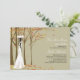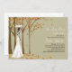 Passeios na montanha de uma noiva através das madeiras da queda quando seu parasol laçado for coberto nas folhas do vermelho, da laranja e do ouro. Ajusta o tom para um chá de panela queda-temático