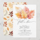 Este chá de panela apresenta lindas folhas de queda de aquarela, fazer perfeito para um chá de outono. O convite é simples e elegante, com fundo branco e texto preto. O galho com folhas de outono e lanternas adiciona um toque de capricho e diversão, e o design geral é perfeito para celebrar o próximo casamento da noiva a ser.