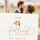 Um pequeno ramo da fenda de cobre cai a folhagem em aquarela e um esquema de cor de cobre e ferrugem enfeita a crista nesta elegante, simples, elegante e moderna modelo de convite para casamento. Apresenta uma caligrafia moderna e elegante com amplos florescimentos e o título "apaixonar-se". Crescente monograma para noiva e noivo. Luxuoso, mas simples, clássico, mas chique, moderno, mas eterno. Uma escolha encantadora para um casamento no outono com cobre, laranja queimada, terracota, bege, vermelho, laranja e outras matizes de outono.