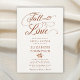Um modelo romântico, elegante, simples, elegante e moderno para os meses de outono - setembro, outubro, novembro. Apresenta uma caligrafia moderna e elegante com amplos florescimentos e o título "apaixonar-se" e um ramo da faia de cobre que define o tema da cor para este convite de casamento outono: terracotta. Luxuoso, mas simples, clássico, mas chique, moderno, mas eterno. Uma escolha encantadora para um chá de panela de outono com cobre, laranja queimada, terracota, bege, vermelho, laranja e outras formas de queda.