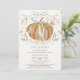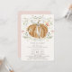Esta elegante e romântica "queda no amor" convite para a chá de fraldas da menina apresenta uma abóbora laranja com um arco/fita branco cercado por borboletas e flores silvestres. O verso apresenta um fundo de rosa claro com padrões de bolinhas branca. Personalize-o para as suas necessidades. Você pode encontrar produtos correspondentes na minha loja.
