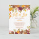 Queda bonita no chá de panela da folha do outono do amor que caracteriza o ouro à moda & chique, a laranja, o verde e as folhas da oxidação ajustadas em um fundo branco com uma mão rotularam a pia batismal. Lance nosso convite na moda do chá de casamento ver sobre uma parte traseira de coordenação popular para um toque especial extra.
