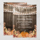 Convites rústicos de chá de panela de outono com fundo de barril de madeira de carvalho de celeiro country, luzes cintilantes, folhas de outono, abóbora da colheita e um modelo de amor de outono que é fácil de personalizar.