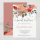 Queda romântica e elegante vassoura cor d'água floral doce dezesseis festas de aniversário com burgundy vermelha pintada à mão, terracotta, rosa poeirento e flores verdes e caligrafia moderna e química com confete dourado.