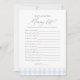 Peça aos chás de fraldas que participem de um jogo de 'Quem conhece melhor a Mamãe' com este elegante cartão de jogo, com gingham azul e tipografia de cinzas.
