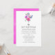 Rosas e peônias de temas cor-de-rosa-quente sutil, convites de morcego floral mitzvah com acentos de roxo, turquesa, azul e violeta.