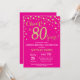 Surpreenda o Convite de Aniversário de 80 com o Fundo de Diamantes Rosa Quente e Dourado. Dourada Confetti. Aniversário Adulto. Homens ou Mulheres Aniversário. Para mais personalização, clique no botão "Personalizar" e use nossa ferramenta de design para modificar este modelo.