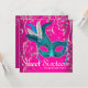 Bonito máscara de pena rosa azul-téal e confete rosa rosa rosa rosa rosa-quente e azul-téal doce dezesseis convites de aniversário. Este elegante e divertido mascarada cor-de-rosa-quente e azul-lacrimogêneo é facilmente personalizado para o seu evento, adicionando detalhes do seu evento, estilo de fonte, tamanho e cor da fonte e texto. Observe que todos os adesivos, cartões e designs de convite que você encontrará no Zazzle são gráficos impressos sem joias reais, arcos, levantados, gravados, ou peças ou peças adicionadas.