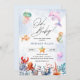 Convite de chá de fraldas divertido e colorido com bichos-da-água, bolhas e fundo azul-d-água salgada.