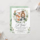 Convite para chás de fraldas de madeira branca com ilustração adorável de aquarelas de cinco amigos da floresta e verde botânico macio