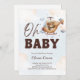 "Prepare-se para uma decolagem adorável para a paternidade com nosso encantador 'Oh Baby!' Convite para Chá de fraldas do Helicóptero do Urso de Teddy! Este encantador convite à aquarela apresenta um ursinho marrom giro feliz pilotando um helicóptero clássico, graciosamente soprando nuvens brancas e estrelas sutis. A suave e neutra paleta de blues, cremes e browns faz dela uma escolha versátil, perfeita para celebrar qualquer pequeno copiloto no caminho.