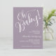 Os convites roxos para chá de fraldas na moda Oh Baby! apresentam detalhes de sua festa em letras brancas quentes na frente e no verso, código QR de registro, rifa de fralda e livros para detalhes sobre bebês. Disponível em mais cores e itens CORRESPONDENTES em nossa coleção.