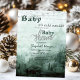 O convite para chás de fraldas bonitos apresenta um chá de fraldas de floresta de inverno. Esses convites para chuveiros de bebês são facilmente personalizados para seu evento simplesmente adicionando seus detalhes.