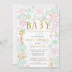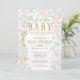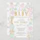 Convite moderno para o chá de fraldas de inverno, com flocos de neve dourados e cor-de-rosa e azuis, colocados sobre um fundo branco de tendência para um chá para meninas ou rapazes. Visite o nosso compro para ver toda a nossa coleção de flocos de neve para raparigas e rapazes.