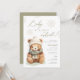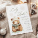 Esta design apresenta um ursinho de peluche bonito e flocos de neve sutis. Paleta de cores: verde-sábio, bege e marfim. Este convite para chás de fraldas do tema "Baby it's Fold Outside" é perfeito para o inverno.