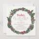 Este belo convite de chá de fraldas "bebê que está frio lá fora" apresenta uma coroa de férias com verde e bagas vermelhas em aquarela em fundo creme. O verso apresenta um fundo vermelho com padrões brancos de neve. Personalize-o para as suas necessidades. Você pode encontrar produtos correspondentes na minha loja.