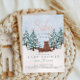 Este chá de fraldas elegante e caprichoso "Baby It's Cold Outside" apresenta dois ursos marrons de inverno em uma floresta de pinheiros verdes, com um flurry de neve, e uma adorável ilustração de ursos e ursos bebês no verso. O convite neutro por gênero pode ser totalmente personalizado com os nomes dos pais e outros detalhes necessários para o seu partido. O perfeito design de neve para o seu chá de fraldas de inverno!