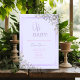 Um quadro decorativo com uma borda geométrica rosa, acentuado por uma púrpura e uma folhagem verde leves. O verde decora graciosamente os cantos superior direito e inferior esquerdo, adicionando um toque de elegância natural.