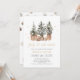 Este convite apresenta a aquarela das árvores de Natal em tons de verde macios e rústicos, enfeitiçados com borbulhas naturais castanhas e beges. Colocada contra um fundo quente e neutro, a design minimalista evoca uma atmosfera de Natal confortável e inspirada na natureza, perfeita para celebrar a chegada de um novo bebê.