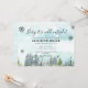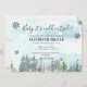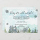 Cartão de convite para chá de fraldas de inverno bonito com uma paisagem nevada. Uma bela floresta aquosa com pinheiro faz deste cartão um suplemento especial ao seu chá de fraldas de inverno.