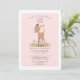 Um doce veado faz um convite de festas adorável para o aniversário de qualquer criança! "Nossa querida" é perfeita para uma floresta ou uma festa temida de um animal bebê. Disponível em rosa ou azul para uma garota ou um garoto. Esta ilustração fofa é um original de Kat Parrella - ela não parece feliz em sua casa de floresta tocando entre cogumelos, verde e bétula?