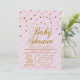 Convites Querida Menina Rosa e Dourada Confetti | CHÁ DE FR