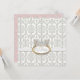 Este Convite para Chá de fraldas de Menina apresenta uma elegante coroa velada francesa com uma dupla borda oval de ouro com a frase "Oh Baby!" em letra de caligrafia manual escrevendo em uma cinza macia e contemporânea. Isso é definido sobre uma fita bordada branca e o fundo é um padrão de local "bordado" branco com bordas brilhantes sobre a cor de fundo de sua escolha. O verso tem o mesmo fundo com uma estrutura metálica dourada e o texto do seu chá de fraldas. Você pode criar este anúncio ou convite em uma combinação absolutamente colorida - apenas nos envie um e-mail e estamos felizes em ajudar.
