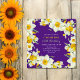 Convite de aniversário púrpura feminina, amarelo-impermeável e branco, da flor daffodil. Personalize facilmente este convite de aniversário floral com a sua própria redação, premindo o botão personalizá-lo para reorganizar e formatar o estilo e a colocação do texto. Todos os textos são editáveis. Itens correspondentes disponíveis no repositório!