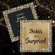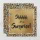 Impressão leopardo elegante sobreposta com folha de ouro e Shhh, é uma surpresa! na frente e seus detalhes de festa de aniversário em letras quentes nas costas para QUALQUER aniversário da IDADE. Itens CORRESPONDENTES disponíveis na nossa coleção.