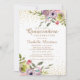 Flores cor-de-água, cor-de-rosa e amarela, elegantes, com brilho dourado num convite de festas de Quinceañera branco. Entre em contato conosco para obter ajuda com a personalização ou para solicitar produtos correspondentes.
