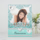 Quinceanera 15 Festa de aniversário Tiara Teal Blue White Silver Pearl Adicione sua foto. Aniversário Elegante de 15 Todas Ocasião Apenas mude de idade. Convites de aniversário de festa Modelo