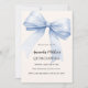 Um bege macio, fundo colorido creme, decorado com um grande arco azul. Personalize e adicione um nome e detalhes da parte.