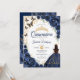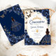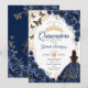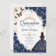 Convites Quinceanera Azul Marinho Floral Dourado