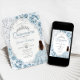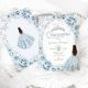 Convite para comemoração de Quinceanera, azul e prata. Possui uma morena em vestidos de vestido de bola, fonte de script, borboletas prateadas, rosas de aquarela e tiara. Perfeito para uma elegante celebração de glam estilo princesa. Personalize com seus próprios detalhes. Impressos convites Zazzle ou modelo de impressão digital instantânea para download.