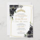 Convites Quinceañera Black & Dourado Elegante Floral
