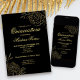 Parte da nossa Coleção de Caldeiras Desenhadas Pretas e Douradas Quinceanera, estes belos Convites Quinceanera podem ser completamente personalizados com os seus detalhes personalizados. O design floral chic apresenta desenhos finos de linhas botânicas de flores e folhas em ouro, juntamente com a tipografia de guiões clássicos. Uma versão alternativo deste convite também está disponível se você estiver tendo uma cerimônia de igreja, assim como a recepção. Por favor, procure nossa loja para coordenar itens para a quadra de marmelada e festa de aniversário de quinceneara.