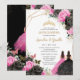 Convites Quinceañera Black Fuchsia Floral Princesa Gêmeos