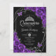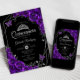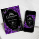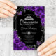 Convite para comemoração de Quinceanera roxa, negra e prata. Recursos, fontes de script, borboletas prateadas, rosas de aquarela e tiara. Perfeito para uma elegante celebração de glam estilo princesa. Personalize com seus próprios detalhes. Impressos convites Zazzle ou modelo de impressão digital instantânea para download.
