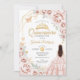 Convites Quinceanera Blush Dourado Vestido Floral Rosa