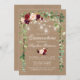 Cintura Botânica de Quinceanera, Moldura de Madeira, Luzes de Corda e Jars Mason, Watercolor Burgundy Marsala Floral, Cartão de Convite Kraft