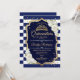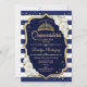Convite para celebração da Quinceanera de ouro branco marinho. Possui faixas brancas marinho, fonte de script, rosas brancas, tiara e confetti. Design clássico com ouro falso brilhante. Perfeito para uma elegante celebração de glam.