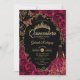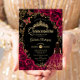 Convite para comemoração de Quinceanera negra, dourada e burgundy. Apresenta uma garota morena na fonte do roteiro de vestimenta de bola, borboletas douradas, rosas de aquarela e tiara. Perfeito para uma elegante celebração de glam estilo princesa. Personalize com seus próprios detalhes. Impressos convites Zazzle ou modelo de impressão digital instantânea para download.