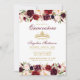 Moderno Elegante, Quinceanera Burgundy Marsala, Cartão Floral Dourado de Convocação para a Coroa - Foto De Volta