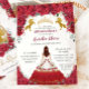 Convites Quinceañera Charro Red Floral Princesa Dourada Cav