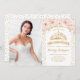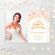 Quinceanera convite de aniversário com sua foto. Possui confete de ouro, tiara e rosas rosa-pinceladas. Design floral clássico com brilho falso. Perfeito para uma elegante comemoração de aniversário.