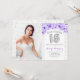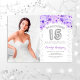 Quinceanera convite de aniversário com sua foto. Possui confete prateado, balão número 15 e rosas roxos. 15 com design floral de classe com prata brilhante faux. Perfeito para uma princesa elegante, celebrações de dia.